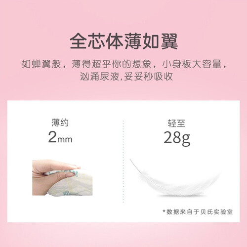 仿身式立体剪裁,轻柔环抱小蛮腰。4cm防漏隔边,超强防漏。2mm吸收芯,超薄超透气,屁屁好清爽。