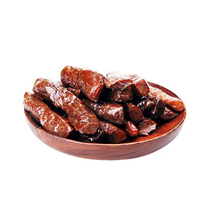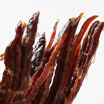 悉心挑选肉质紧实的牛后腿肉,用传统工艺烘烤、风干,牛肉外表油亮诱人,吃起来肉香浓郁有韧性。