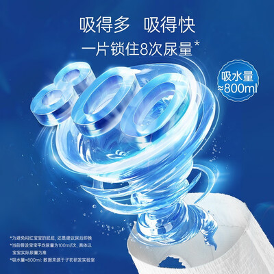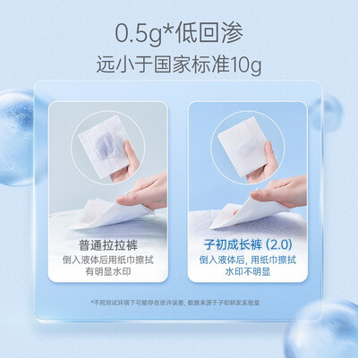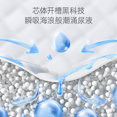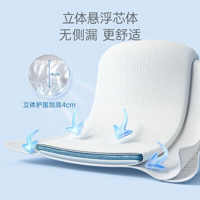 应用羽感轻芯瞬吸科技,穿着轻薄无负担,而且可迅速吸收尿液。配合立体悬浮芯体,能舒适贴合腿部,并且防侧漏。
