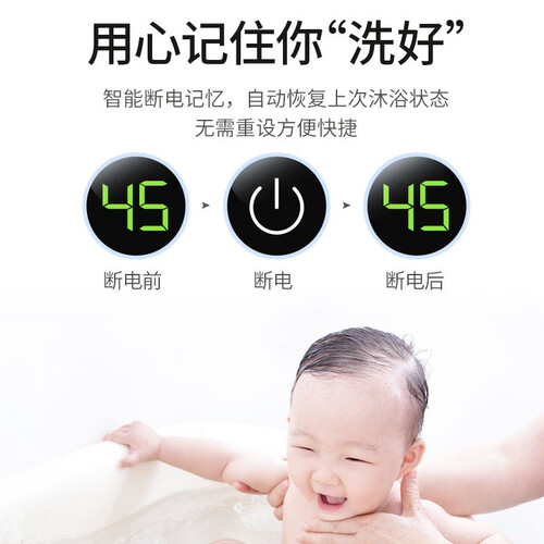 采用了智能仿生静音系统,有效减少部件间碰撞,让你安静享受沐浴。拥有智能断电的设计,断电后无需重新设置,让使用更方便。