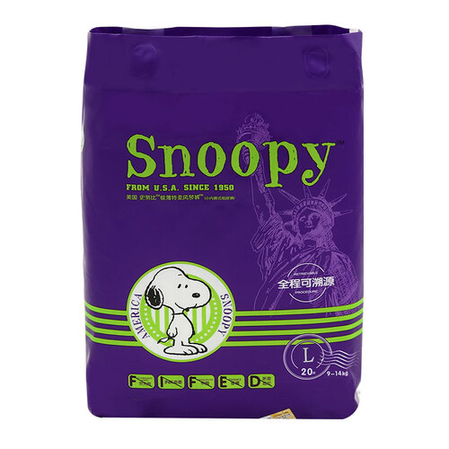 高密度透气底膜,屁屁持久清爽。细棉绒般内外表层。缺点在于吸收力可能不太行,注意及时更换!喜欢史努比的宝妈可以考虑入。