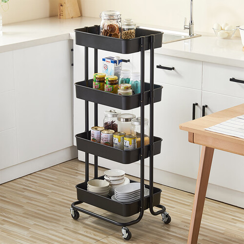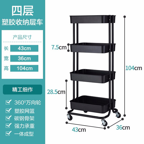 宽大开放式储物空间设计,可以收纳大量物品,便捷实用。万向轮设计,自由移动,节约力气,想去哪就去哪。