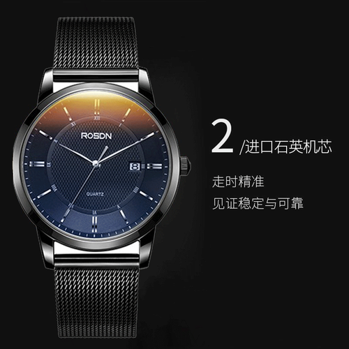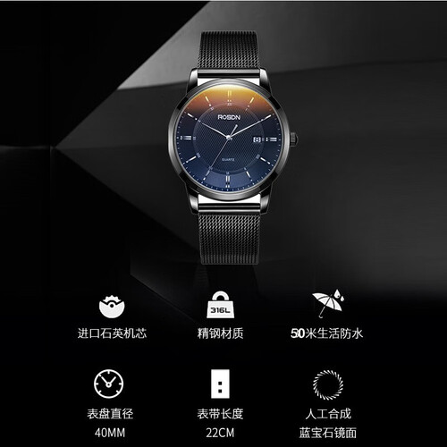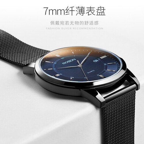 表镜配备低调的蓝色炫光设计,品质感好且具有个性气息。7mm纤薄表盘设计,佩戴起来宛若无物,舒适感强。