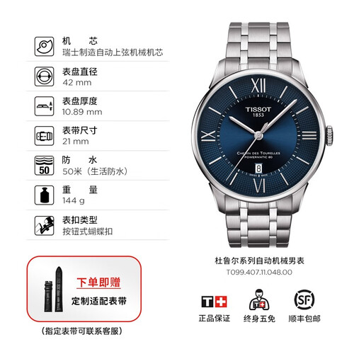 天梭杜鲁尔系列机械男士手表