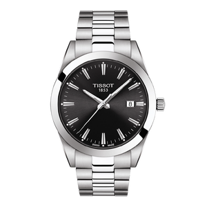天梭 黑盘钢带石英瑞表