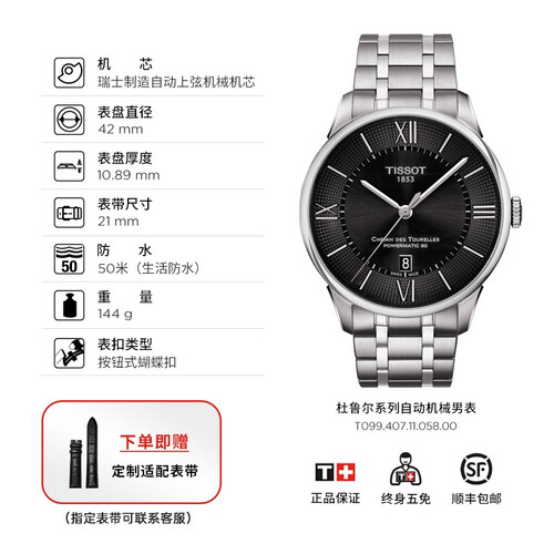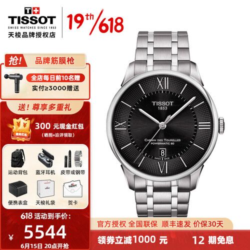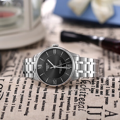 天梭 黑盘钢带 瑞表