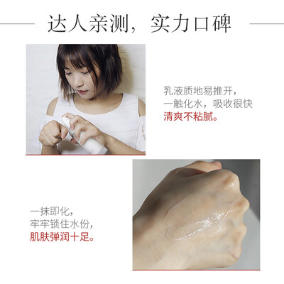 亮泽锁水,提升肌肤亮白度和弹润度,焕发奕奕神采;蕴含红景天提取物,减少暗沉幼嫩肌肤;乳液质地易推开,一触化水吸收快。