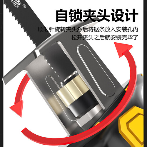 便捷的无线式往复锯,即插即用,可轻松携带至多地使用;小巧的体型设置,把握顺手易切割,单手可操作不费力。
