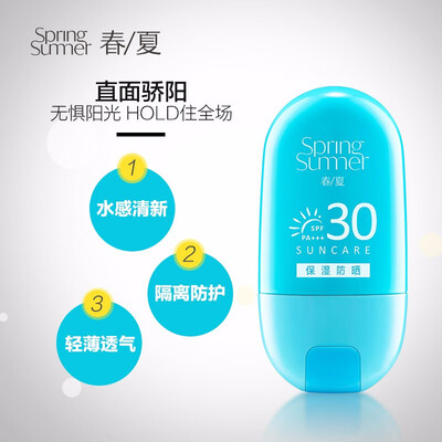 保湿防晒霜,触肤即化成水,清透水润滋养肌肤。具有长效维持耐晒力,无惧汗水侵袭,适用于军训、户外等场合。