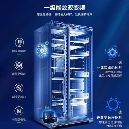 一体式离心风机搭载变频压缩机,制冷快减少温度波动,能够延长食材的储存时间。机身表面耐磨耐刮,不易留有指纹,便于平时打理。