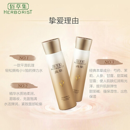 蕴含芍药、茉莉、人参等草本精华,提拉紧致肌肤,为肌肤补充充足水分,淡化细纹。