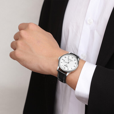 经典圆盘设计,银白色调,搭配黑色鳄鱼纹皮带,轻松展现出儒雅稳重的型男风格,搭载自动机械机芯,长动能,非常稳定耐用。