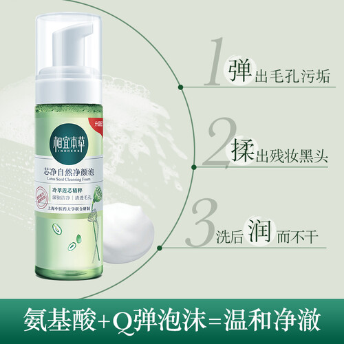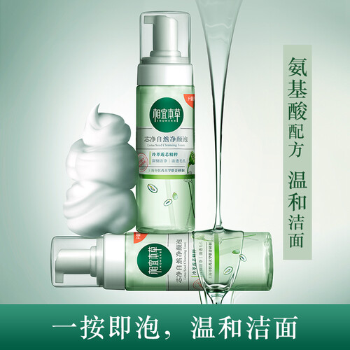 采用氨基酸配方,温和不刺激,泡沫绵密,深层清洁毛孔垃圾,有效调理肌肤平衡水油,外观采用按压式操作,一按即出,快速方便。