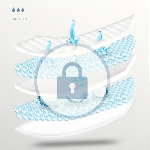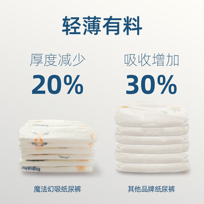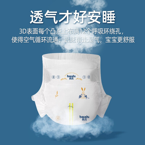 轻薄柔软的设计,带来舒适的穿戴体验,干爽大吸量,可承托宝宝8次尿量。3D表层覆盖12个呼吸环绕孔,带走湿气,持久干爽。