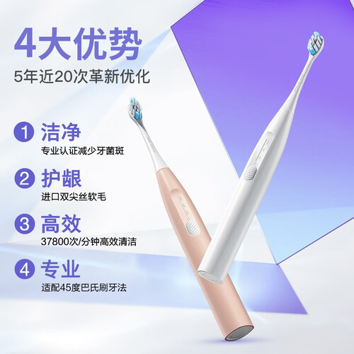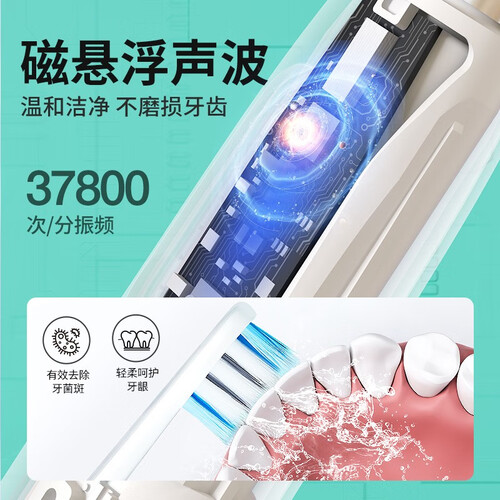 磁悬浮声波技术搭配4种清洁模式,科学清洁,避免牙齿损伤。无线感应充电模式,30天长效续航,无需频繁充电。