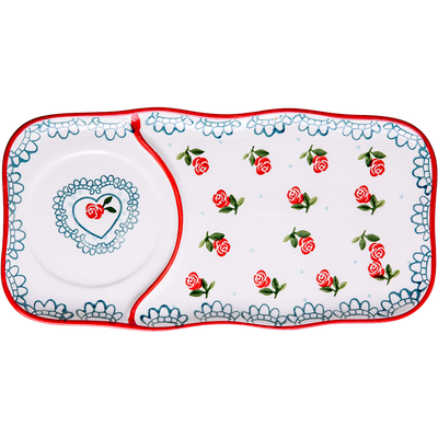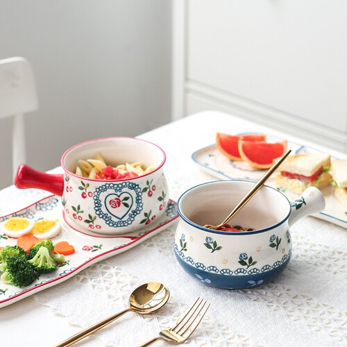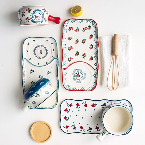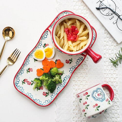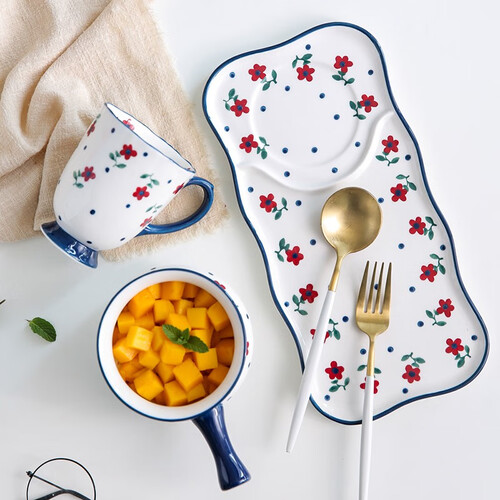 长方形与圆形的组合,奇妙有趣,富有艺术创意气息,为进食增添乐趣。红色的樱桃图案满印,甜美生动,尽显活力。