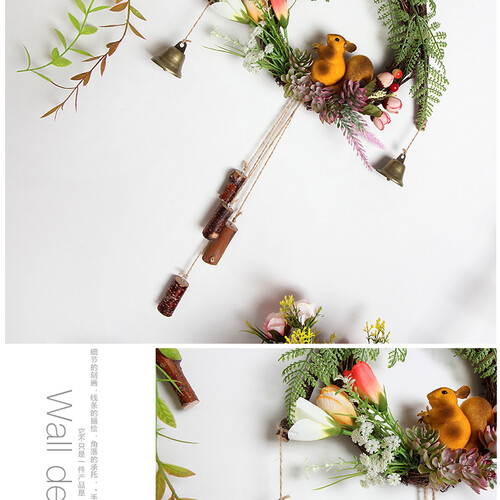 以干树枝、藤圈和仿真花为材料,加上精美的线条刻画,打造出简约自然的风格,为您单调的墙面增添一抹生机。