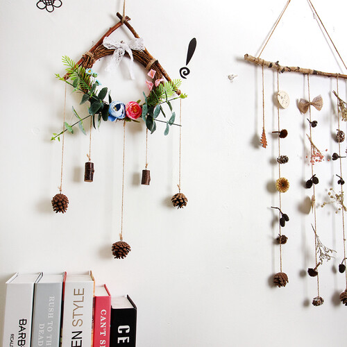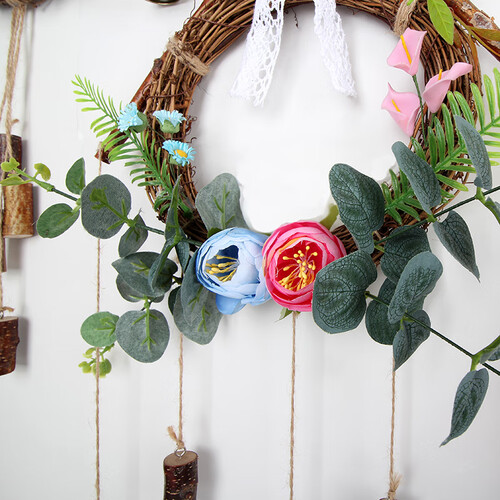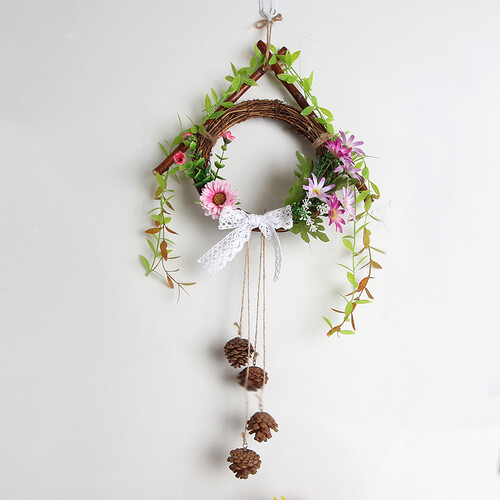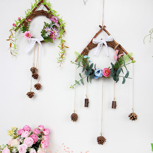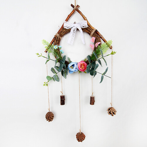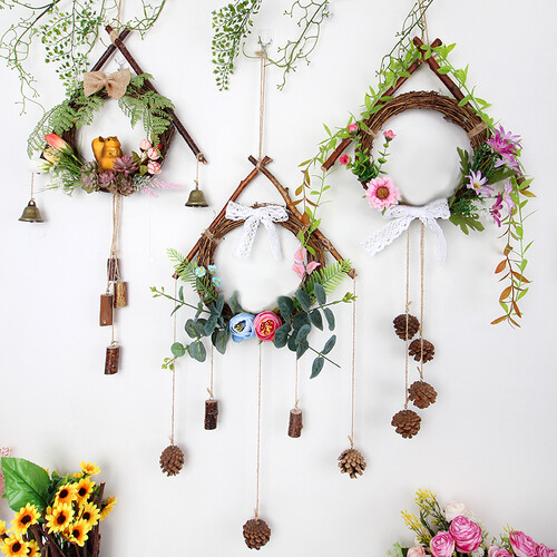 采用干树枝、藤圈、仿真花制作而成的小房子造型,郁郁葱葱的外观富有春天气息。多种款式,根据需求可随意选择。