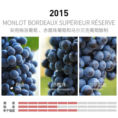 选用多种葡萄酿造,果香醇厚,开瓶需要醒酒,能加速单宁软化,让口感更加温润多层次,瓶口设计能让酒持续发酵。