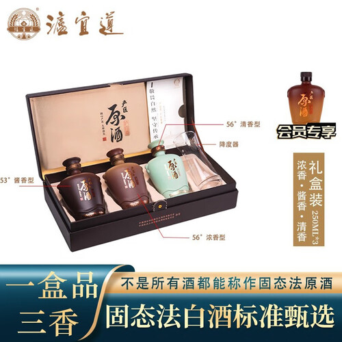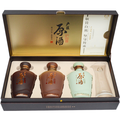 这款泸宜遵礼盒包装的白酒,精致美观高端大气,礼盒内包含酱香型、浓香型以及清香型三种酒,每一瓶都能给你带来醇香独特的体验。