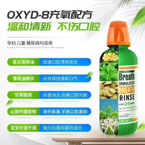 清洁口腔,入口舒爽,清新不刺激。有效清除口腔内的细菌,减少牙菌斑,美白修复,护龈健齿,呵护牙齿健康。