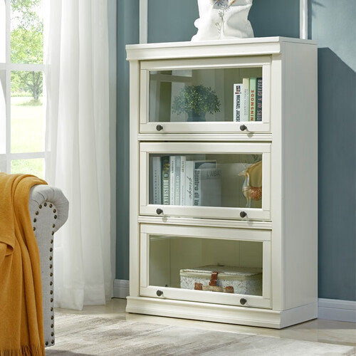 宜美森林的这款书架,优选钢化玻璃打造透明的柜门,安全防爆,复古开合设计,为使用增添一份趣味性。