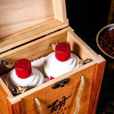 酒窖珍藏5年的53度大曲酱香型白酒,酒体呈微金色,具有挂杯的现象。酒花的大小均匀,像小米粒一般,整体的风味特别协调。