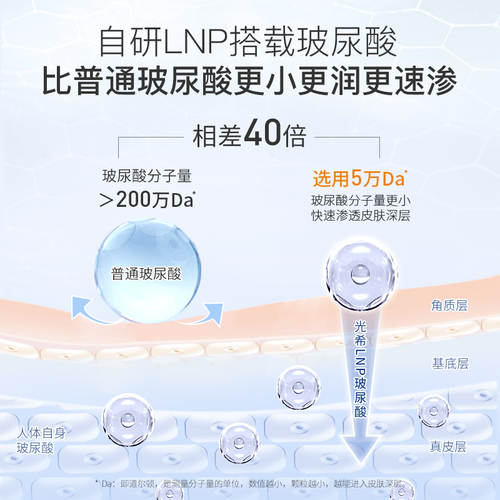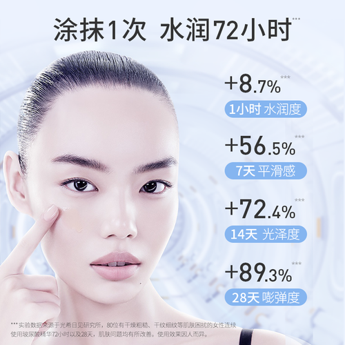 双茧脂质体包裹玻尿酸,直达干涸肌底,拯救你的拍脸恶习,实现补水不用拍。一抹化水,易吸收,让肌肤持续水嫩。