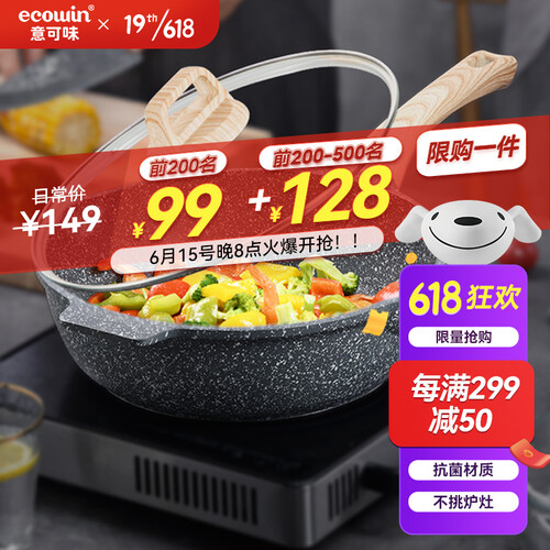 意可味 麦饭石无油烟炒锅
