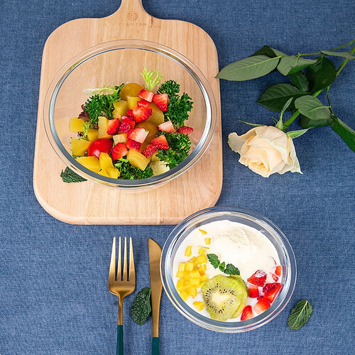 晶莹剔透的玻璃碗,能够助您一览无余的看到内部食材的剩余量;碗身质感丝滑缜密,没有多余的缝隙,尘垢难以躲藏,清洗更容易。