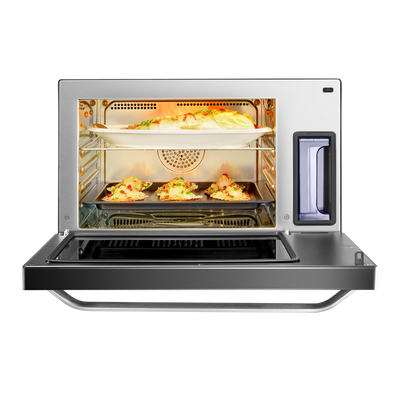 3D循环热风,让热量均匀快速渗透食材,口感更出色。缺水自动提示,方便及时添水,设计更人性化。3D循环热风,上色更均匀。