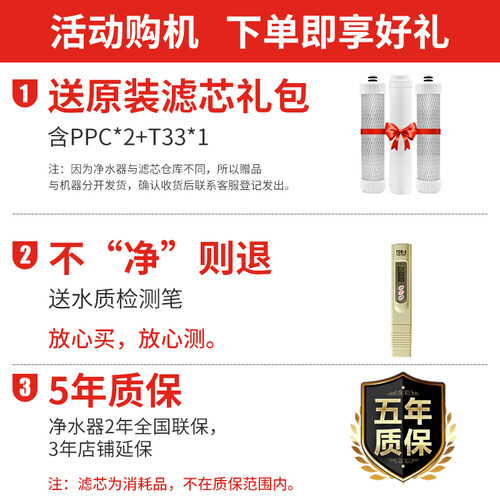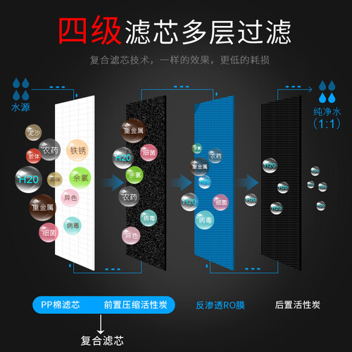采用国外进口陶氏RO膜片,出水纯净饮水更安心。低废水比设计,更加省水。选用优质复合滤芯,过滤效果好,损耗更低。