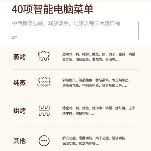 配备了40种智能电脑菜单模式,解放双手舒适享受美味。贴心的智能预约功能,使用方便适合上班族。
