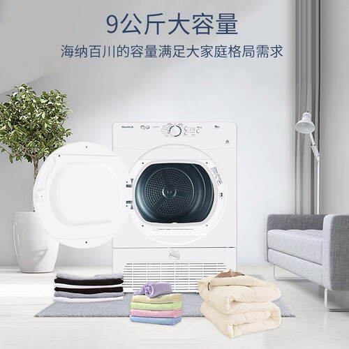 具有空气冷凝烘干功能,健康烘干衣物,减少纤维内部的难闻异味。拥有9公斤大容量体积,海纳百川,大家庭烘衣无忧。