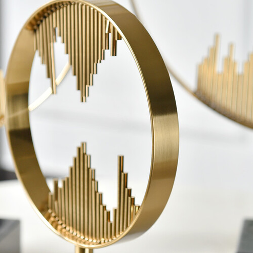 新型的中式设计,上下相对的圆形山影,简单又大方,采用大理石制作底座,充满简约美,放在家中,绽放光彩。