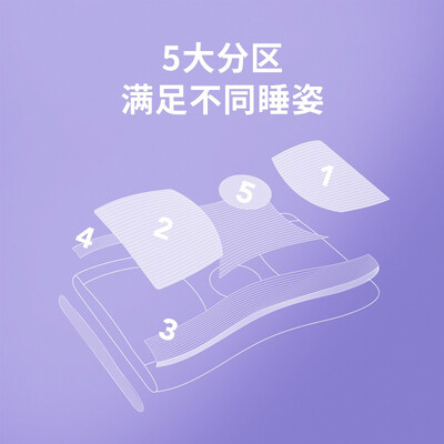 多区域可调节高度,贴合颈椎生理曲度,大枕面,分区立体面料,透气3D结构,柔和亲肤,枕头内空气流通,快速吸收并挥发湿气