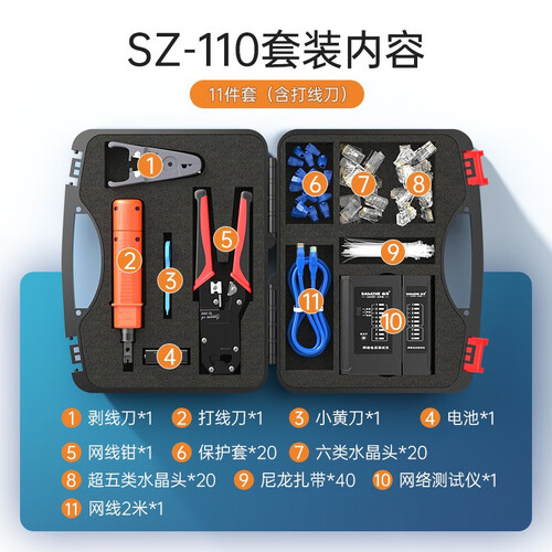 含有剪、剥、压线三合一的网线钳,质感出色,使用趁手。更有网络测试仪以及剥线刀加持,让你领略强大功能套件带来的便捷感。