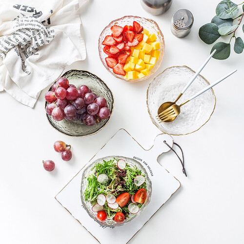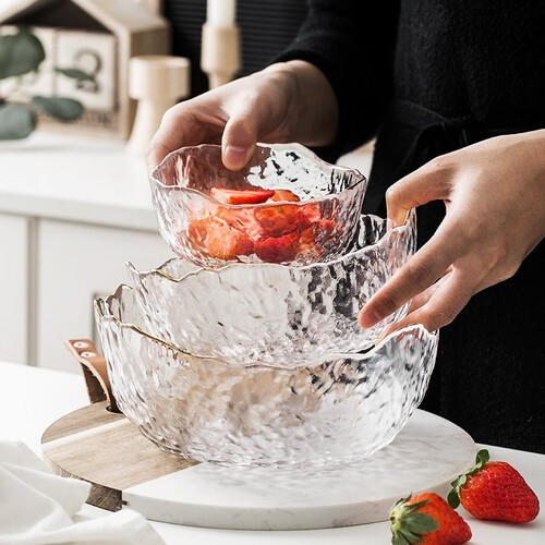 博为锤目纹理玻璃沙拉碗