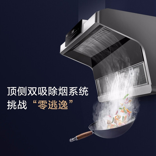 顶侧双吸结构的油烟机,更好的聚拢油烟,实现畅排速吸。两段式结构的滤网,方便拆卸清洁,保持烟机干净卫生。