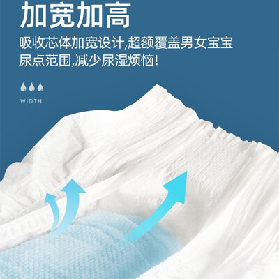 小珍珠面层的设计,柔软亲肤,同时减少了接触面积,提升了透气性。瞬吸芯体,可以轻松吸收8次尿量,让宝宝整晚安睡。