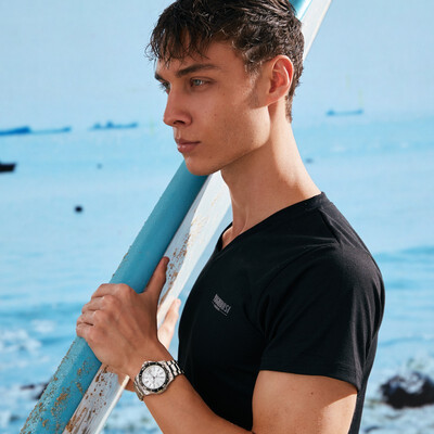 几何形与海浪图案的搭配,整体上凸显出几何学的端庄气质与海浪图案的不羁个性,充满型男魅力与时尚感,彰显自身气质。