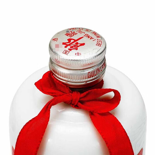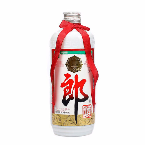 传承岁月历史的老酒,采用白色瓶身基底,附有红色品牌字体标识与红色绸带装饰,复刻经典。