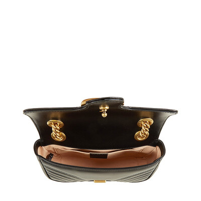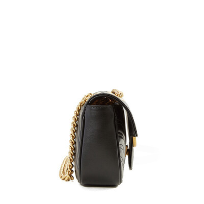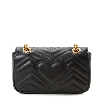 金属质地的双GG锁扣加持,打破了纯黑色的单一沉闷感,上身背负有看点同时质感好。而且背面的爱心元素,更为整体注入浪漫情怀。