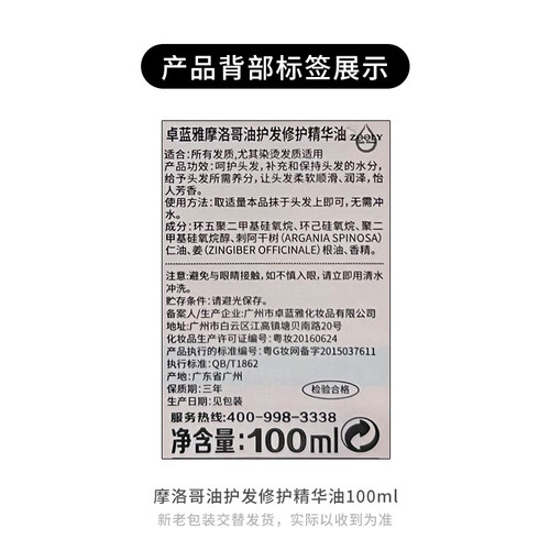 含有摩洛哥油修护因子,层层渗透,修护发芯空洞,改善秀发分叉,令秀发由内而外散发活力光泽。