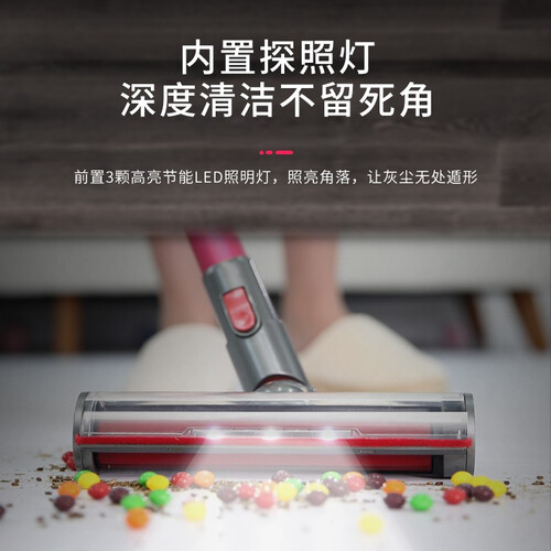 内置探照灯的贴心设计,照亮前方难以发觉的灰尘,令地板光洁如新。支持全身水洗,无需小心擦拭,不带来额外清洁负担。
