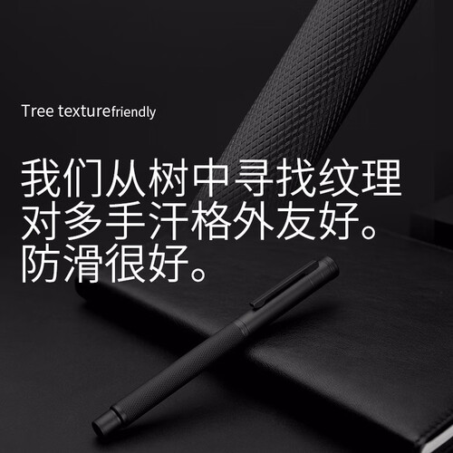 非球型打磨笔尖,使得书写更顺滑,流畅无卡顿。笔身的橡胶漆刻花,触感细腻,方便握笔。采用非球型打磨笔尖,书写顺畅。