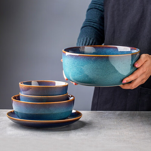 悠瓷 北欧冰蓝陶瓷碗