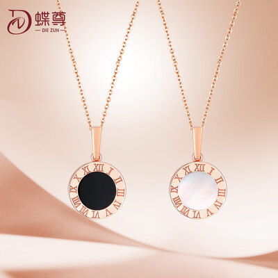 吊坠以罗马数字符号作为点缀,搭配激光刻字的工艺,双面内镶的玛瑙材质,光泽闪亮,点亮了吊坠的设计细节。
