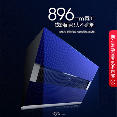 拥有896mm宽屏,让拢烟面积变大,防止油烟扩散,做菜不受油烟困扰。还有380Pa的强悍风压,排烟能力强,防止油烟倒灌。