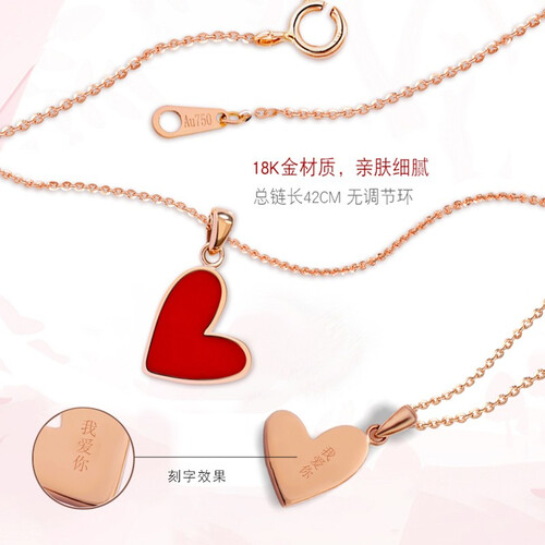 项链采用18K材质制成,还经过光滑打磨工艺,佩戴后更加舒适。加上别致的红心作点缀,佩戴后彰显独特魅力。